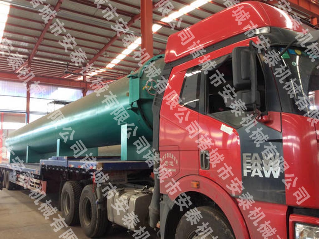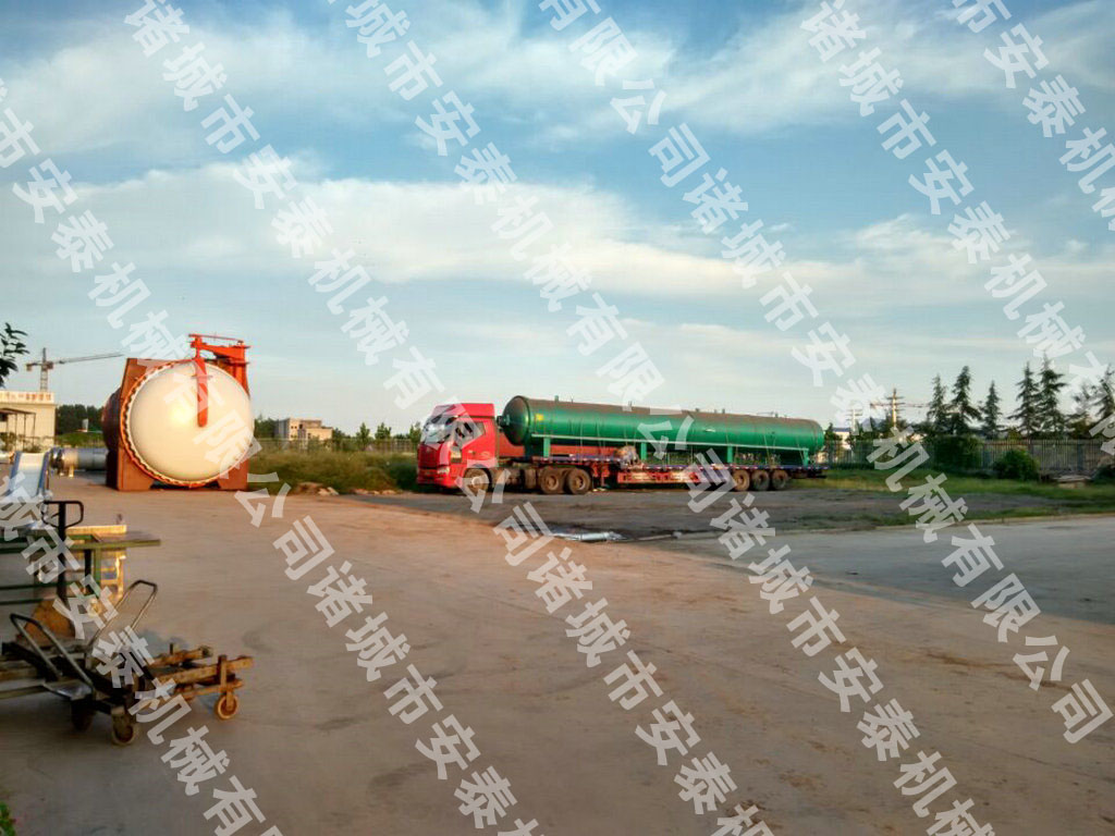 諸城市安泰機械供東北地區(qū)大型木材浸漬罐發(fā)貨,設(shè)備總長度18米。