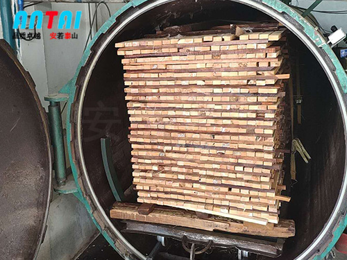 3、工藝流程:木材防腐的工藝比較簡單, 加工防腐木使用30個大氣壓的高壓成套設備,整個生產(chǎn)過程采用自動監(jiān)控以準確控制木材的藥劑滲透量與保持量,使產(chǎn)品不僅能達到木材防腐標準,而且能使竹材、名貴硬木的防腐達到國際防腐要求。安泰木材防腐罐根據(jù)使用需要對木材進行鋸切—烘干—刨光—裝罐—真空—浸液—加壓—回液—真空—出料—二次烘干—分級檢驗—打包。